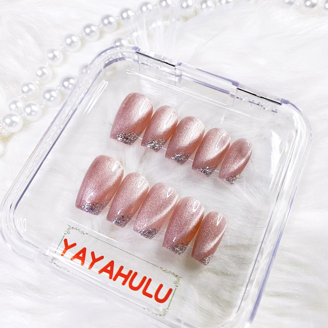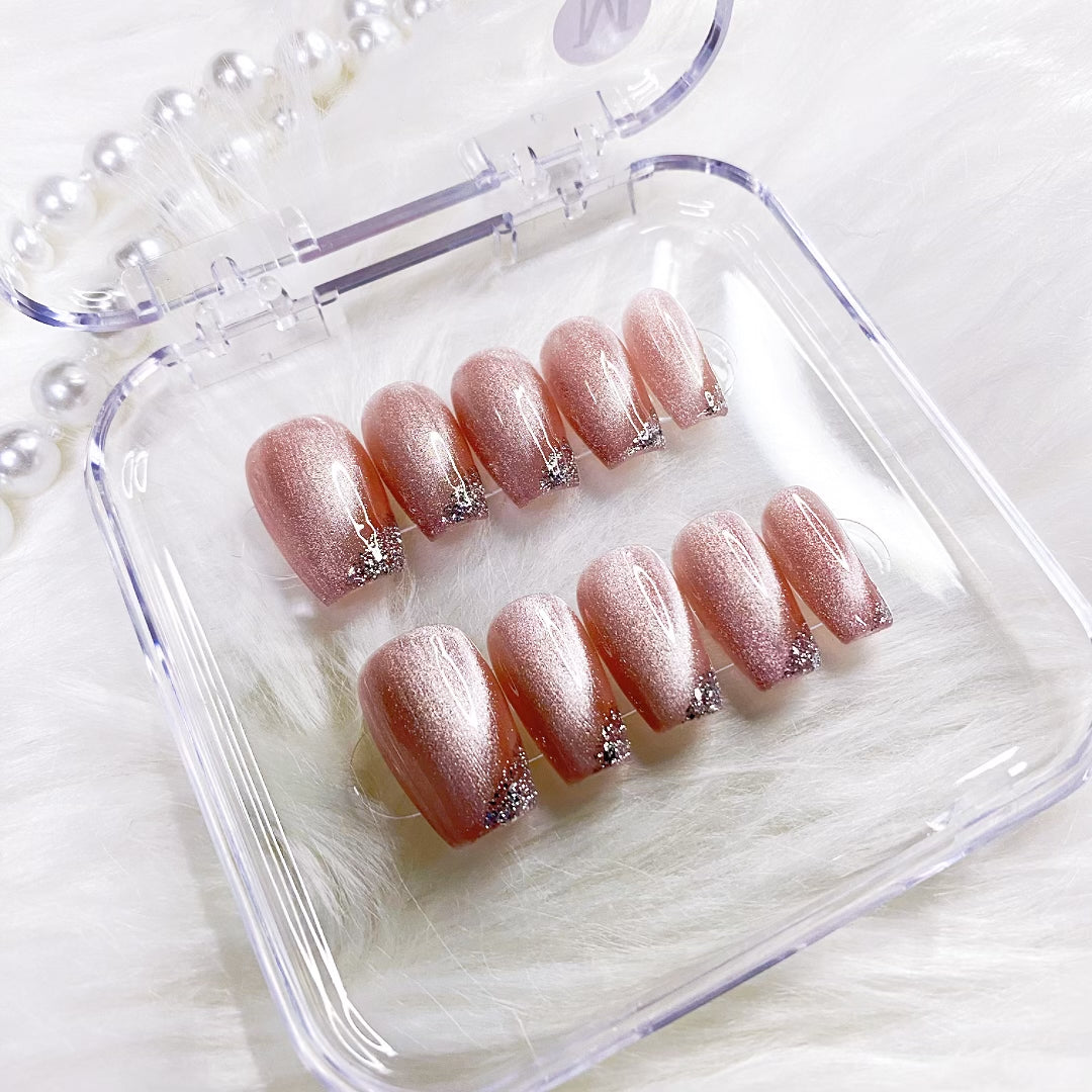 Get salon-worthy nails at home with our pink gradient magnetic powder press on nails. Achieve a flawless ombre look with ease, and save time and money without sacrificing style. No need to wait for them to dry, simply press on and go!