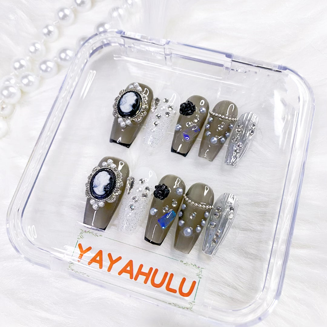 Get a regal and stylish look in minutes with our Black Classical Queen press on nails. These nails are perfect for any occasion and will instantly elevate your outfit. No need for a salon visit, just press on and go - saving you time and money. Feel confident and beautiful with our easy-to-use press on nails.