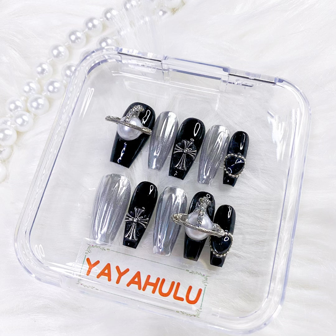 Elevate your look with our Black Queen Mother Series press on nails. These glossy, black press on are perfect for a night out or a special event. Easy to apply and remove, these nails will save you time and money at the salon. Make a statement with our stylish and convenient press-on.
